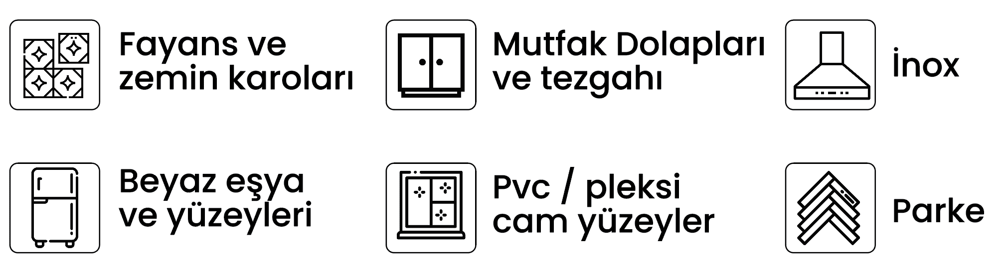 Dolap – Tezgah – Fayans – Karo – Beyaz Eşya – Parke