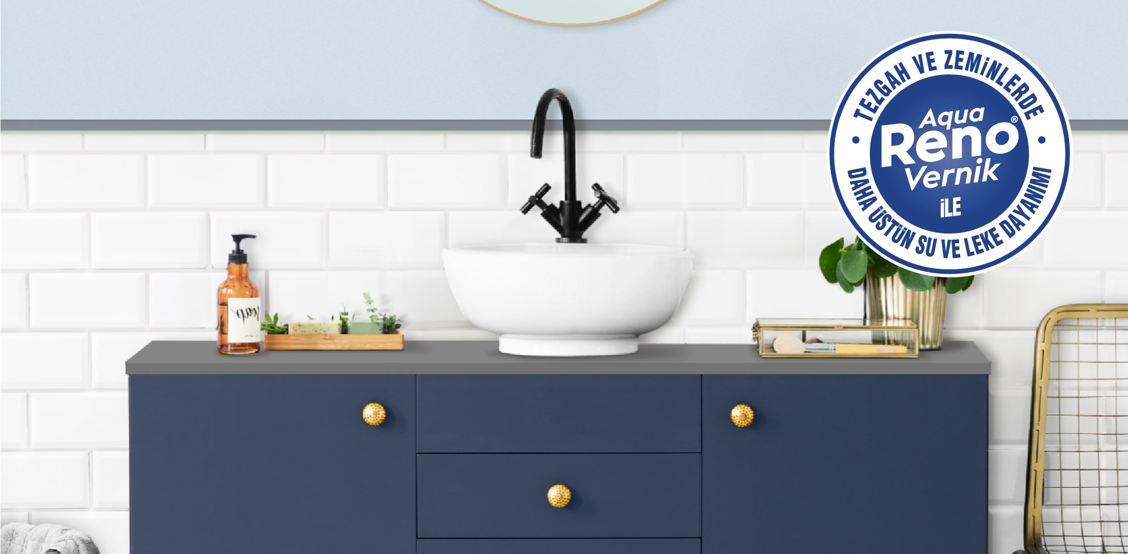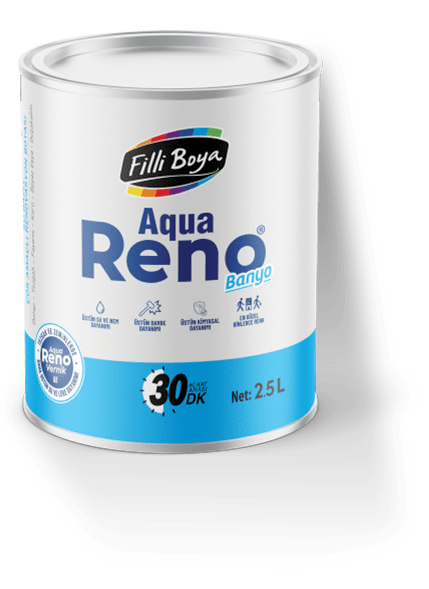Aqua Reno® Banyo, ev güzelleştirme fikirleri için geliştirilen, ipeksi mat dokuda,tam silinebilen ve yıkanabilen,kendinden katalizörlü polimer(Self Catalyzed Polymer)teknolojisine sahip, su bazlı, çok amaçlı renovasyon boyasıdır.